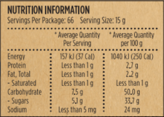 Ingredients: Ceylon loose leaf black tea (41%), 100% Pure Australian native honey, spices (star anise, cinnamon, cardamom, ginger, cloves, black pepper), natural flavours. Contains: This product contains bee pollen.